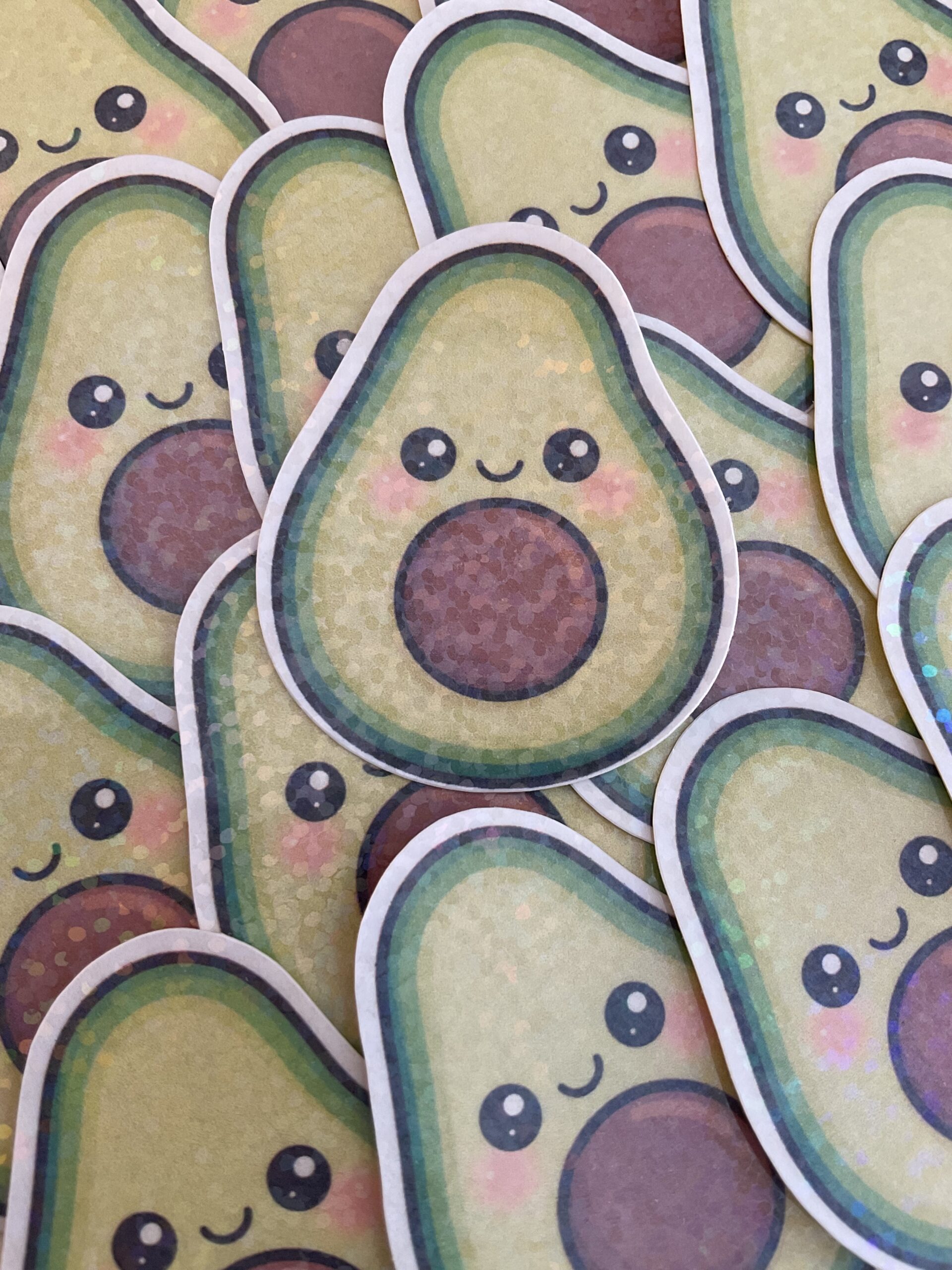 This sticker is not only waterproof but also shiny and sparkly, which perfectly matches the avocado kawaii theme!